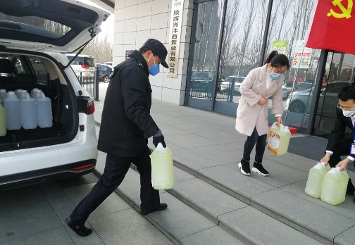 2020年3月3日,咸润实业向西咸新区沣西新城疫情防控指挥部办公室捐赠酒精、84消毒液等疫情防控用品,共计400斤。守望相助,共克时艰,咸润实业用实际行动共抗疫情,希望这批物资能为疫情防控贡献一份微薄之力。