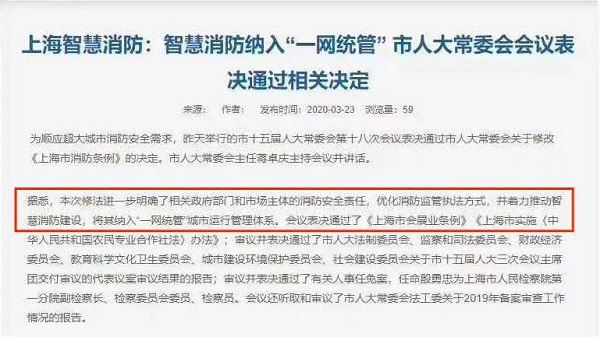 消防安全作为国家公共安全的重要组成部分,日益受到公众的关注。关于智慧消防的建设,早在2017年的“297号文件”就开始了。在全国发生了多起重大火灾后,使社会的目光聚焦于消防安全,各地政府更是从上至下推出了一系列指导意见及整改文件,多方位、多层次的对消防安全保障提出了新要求,并将智慧消防纳入智慧城市总体规划,打造现代化城市治理新战略。