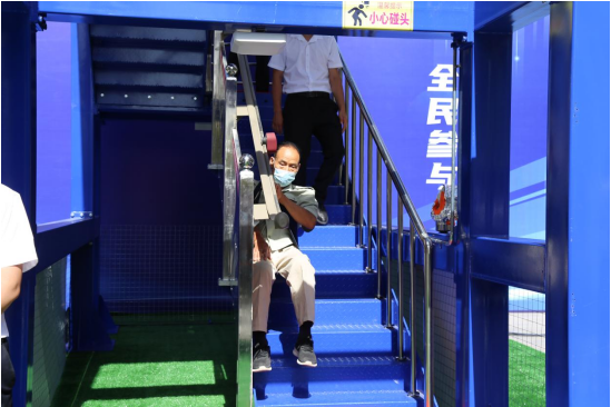 上午,在沣西新城天福和园小区观摩现场,通过1:1还原了楼梯逃生通道内安装的逃生设备状态。现场随机邀请到小区居民、老人和儿童演示该系统的使用情况。72 岁的张大爷在演示该系统逃生效果后,称赞道:“这个装置很好,特别是像我们这些老年人腿疼、腿脚不好的,有火灾、地震、停电的时候,从高层往下滑,快速安全,速度还可以控制,适合老年人。”