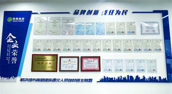 经鉴定,陕西咸润实业发展有限公司自主研发的“高楼应急安全逃生智联系统”对行业发展具有示范引领作用,技术创新性强,成果达到国际领先水平,填补了高层建筑火灾等紧急情况下老弱妇幼等弱势群体快速、安全、高效、便捷、自主逃生设备设施的空白!