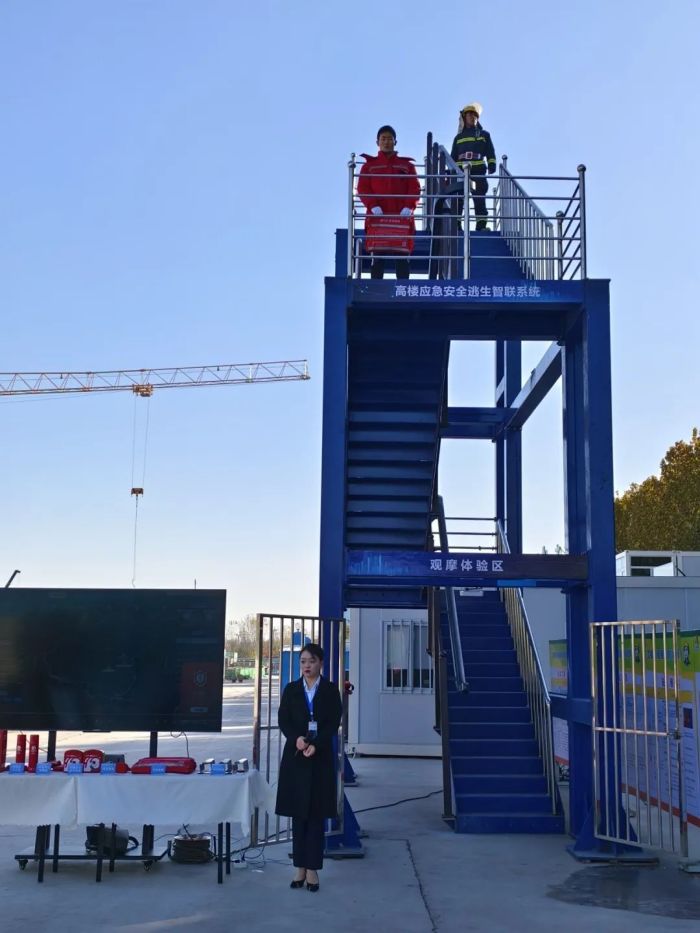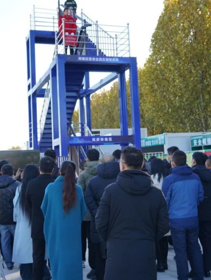 本次观摩会由现场观摩和会议座谈两部分组成,观摩会设置在市级重点项目水城之心应急安全科创谷,现场 1:1 还原了“高楼应急安全逃生智联系统”的钢结构展示架,便于与会嘉宾沉浸式体验和观摩,同时,该系统也是水城之心应急安全科创谷项目开发建设的四大亮点之一,可有效解决城市高层建筑遇灾人员自救逃生难题,补齐城市高层建筑应急疏散基础设施建设短板,技术先进、性能可靠、操作简便,极大程度增加逃生几率。通过现场观摩和研讨,与会嘉宾纷纷对该系统的高效、有序、快速下滑给予高度赞许,并表示项目的未来发展潜力及社会价值远远超出了他们的预期。