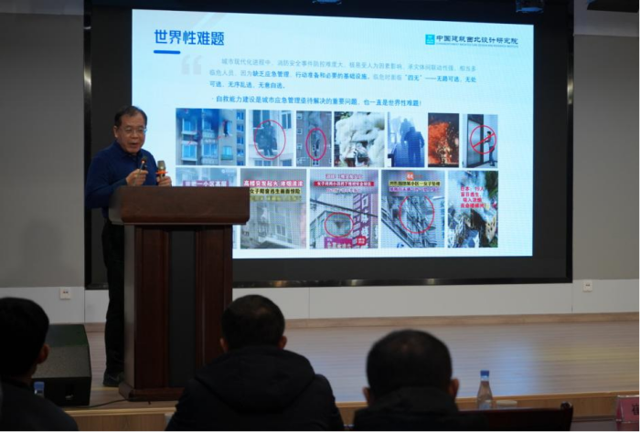 座谈会上,中国建筑西北设计研究院原党委书记、董事长熊中元在发言中强调:未来城市将是可行性与创新性的交汇。未雨绸缪推进韧性城市建设,推动从传统的灾害管理向以容灾、耐灾为核心的风险管理转变,将有助于提升城市的安全性、增强抗风险能力,从而更好保障人民群众生命健康和财产安全。自救能力建设是城市应急管理亟待解决的重要问题,要把自救能力建设作为韧性城市建设的重要抓手,让群众临危时面临“四无”—— 无路可逃、无处可逃、无序乱逃、无意自逃变为“四有”——有自救意识、有自救措施、有自救路径、有自救设施,有效防范和应对城市灾害事故发生。并与现场嘉宾进行互动交流,进一步加深了与会人员对高楼应急安全逃生智联系统的了解和认识。