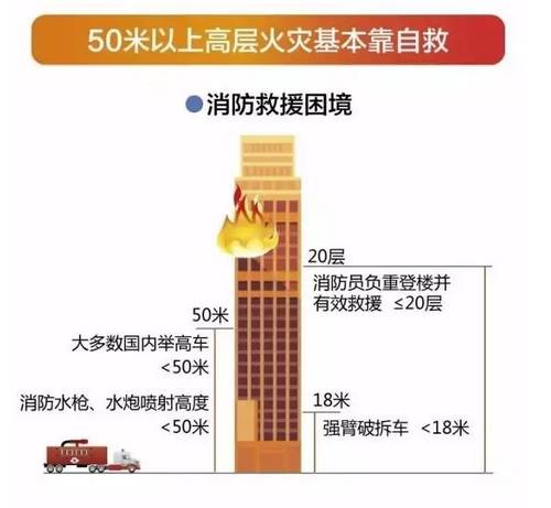 在超高层建筑火灾事件中,消防云梯车救助高度有限,要想成功逃生,很多时候要靠自救。