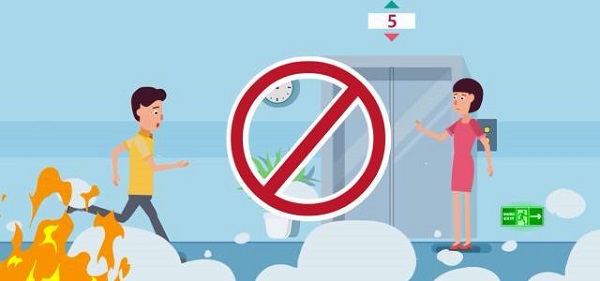 2.千万别坐电梯。因为火场烟气涌入电梯通道形成烟囱效应,电梯里的人会被浓烟毒气熏死。