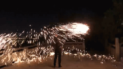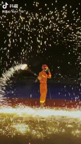可以看到随着不断挥动迸发出的火星